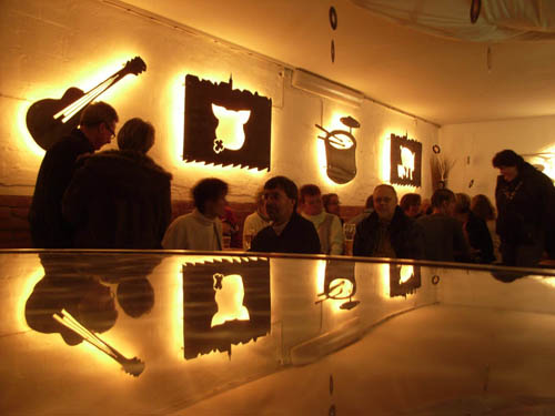 26. 9. 2009 Es ist erstaunlich, wie laut solch drei sympatische junge Männer wie die Musiker von Blank werden können. Mit einem Minimalaufbau im Charakter eines Garagengigs in der Mitte des Raumes gaben die drei alles und haben es dabei geschafft, sogar die Nachbarn zu erfreuen. Viel Erfolg und hoffentlich mal wieder bei uns. (Das Foto hab ich bei Euch gemopst ;o))
